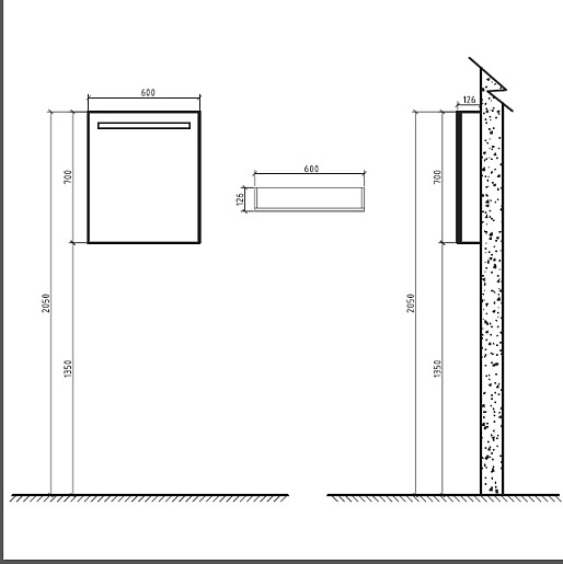 - Зеркало SPC-1A-DL-BL-600, 600x130x700 мм.