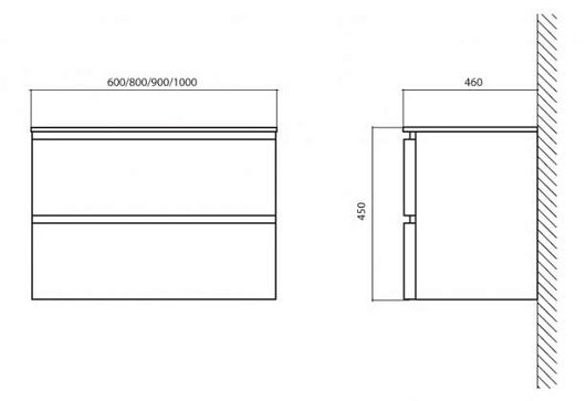 - База под раковину подвесная, с двумя выкатными ящиками, с доводчиками, BB1000FCC-BB14100L/TL