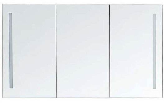 - Зеркало-шкаф SPC-3A-DL-BL-1200 с нижней и встроенной LED (светодиодной) подсветкой дверей с тремя распашными дверьми с двусторонним зеркальным полотном, со стеклянными полками, с розеткой и сенсорным выключателем, 8W, 220-240V, 1200x130x700 мм.