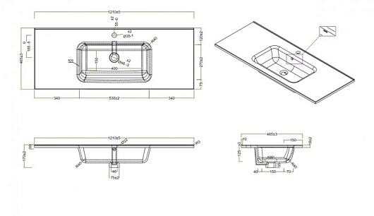 - Керамическая раковина 1210х460 мм, BB1200ETL
