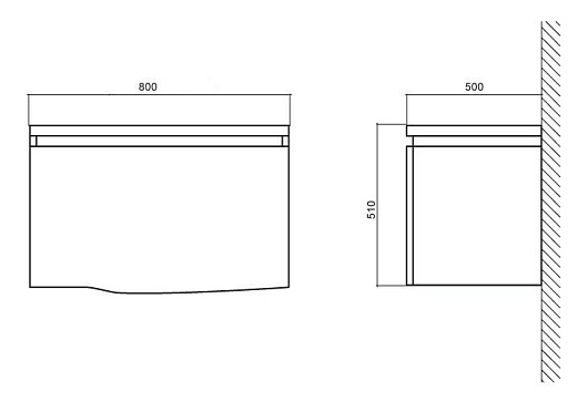 - База под раковину подвесная, с одним выкатным ящиком и одним выдвижным ящиком, с доводчиками, со скрытой (фрезерованной) ручкой в плоскости фасада, BB800DA/BL