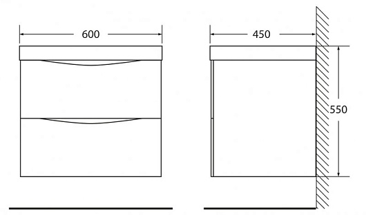 - База под раковину подвесная с двумя выкатными ящиками, с доводчиками, MARINO-600-2C-SO-RCA-P