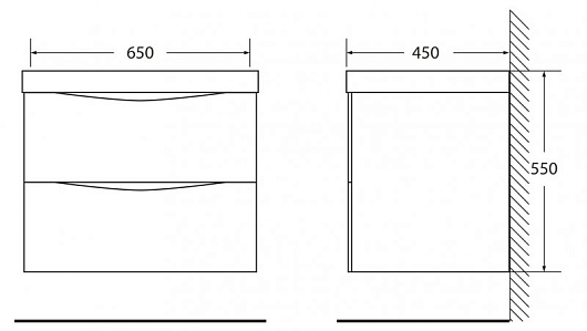 - База под раковину подвесная с двумя выкатными ящиками, с доводчиками, MARINO-650-2C-SO-RW-P