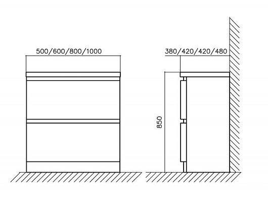 - База под раковину напольная с двумя ящиками, с доводчиками BB1000FHC