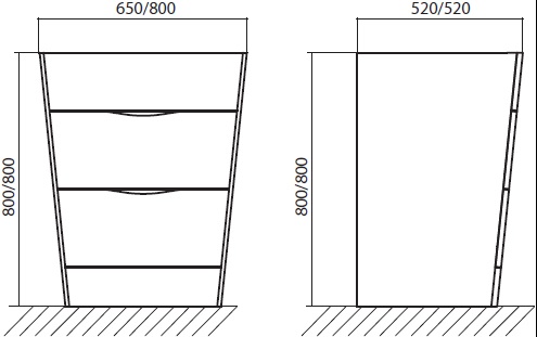 - База под раковину напольная, с двумя выкатными ящиками, с доводчиками, PIRAMID-650-2C-PIA-WO
