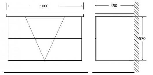 - База под раковину подвесная с двумя выкатными ящиками, с доводчиками, VITTORIA-1000-2C-SO-BL