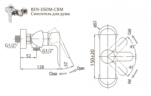 BelBagno Смеситель для душа RENO REN-ESDM-CRM