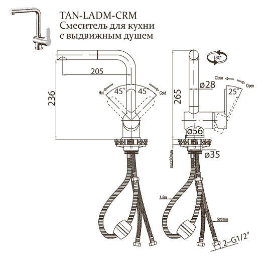 BelBagno Смеситель для кухни TANARO TAN-LADM-CRM
