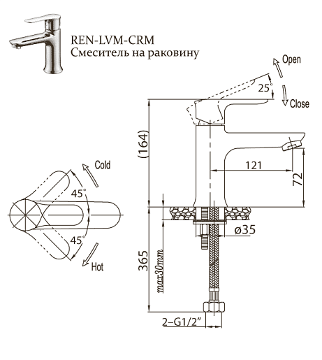 BelBagno Смеситель для раковины RENO REN-LVM-CRM