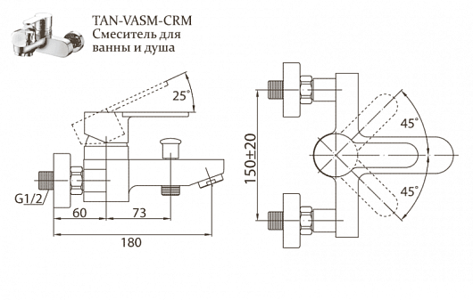 BelBagno Смеситель для ванны и душа TANARO TAN-VASM-CRM