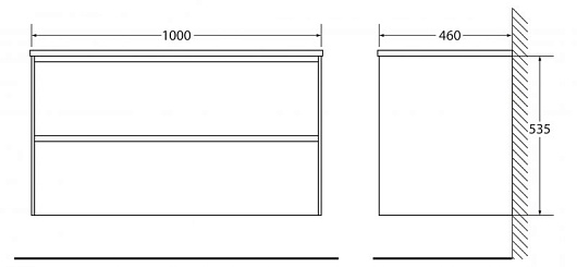 - База под раковину подвесная, с двумя выкатными ящиками PIETRA-1000-2C-SO-PT
