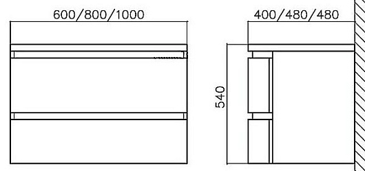 - База под раковину подвесная, с двумя выкатными ящиками, с доводчиками, 800x480x540 мм, BB800DAC/BL.