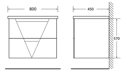 - База под раковину подвесная с двумя выкатными ящиками, с доводчиками VITTORIA-800-2C-SO-BL