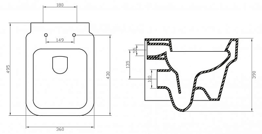 - Чаша унитаза подвесного BB124CH