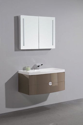 Описание: Зеркальный шкаф с нижней и встроенной LED (светодиодной) подсветкой дверей, с двумя распашными дверьми с двусторонним зеркальным полотном, со стеклянными полками, с розеткой и сенсорным выключателем, 8W, 220-240V.