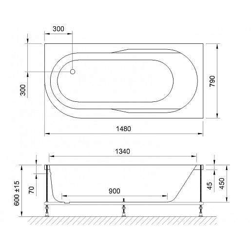 - Корпус ванны изготовлен из прочного сантехнического акрила и усилен армирующим слоем.