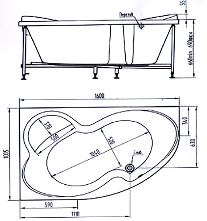 - Корпус ванны изготовлен из прочного сантехнического акрила и усилен армирующим слоем.