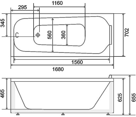 - Корпус ванны изготовлен из прочного сантехнического акрила и усилен армирующим слоем.