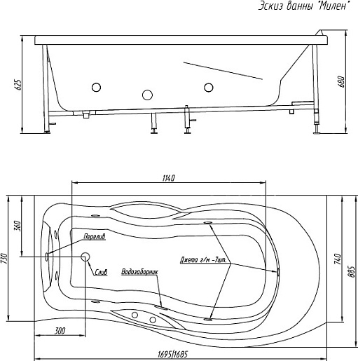 В комплекте: ванна, каркас, слив-перелив.