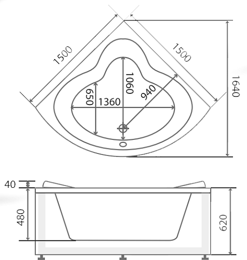 Акриловая ванна Оливия 150x150 - базовая комплектация.