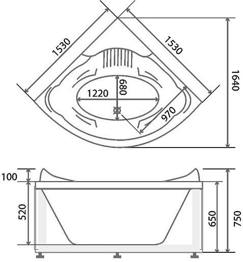- Корпус ванны изготовлен из прочного сантехнического акрила и усилен армирующим слоем.