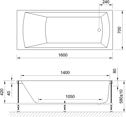 - Корпус ванны изготовлен из прочного сантехнического акрила и усилен армирующим слоем.