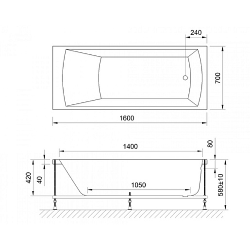 - Корпус ванны изготовлен из прочного сантехнического акрила и усилен армирующим слоем.