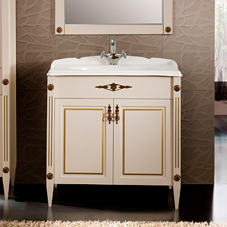 - Тумба под раковину Империя 85, два распашных фасада, слоновая кость с патиной