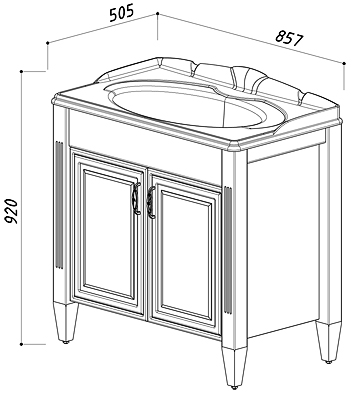 - Тумба под раковину Империя 85, два распашных фасада, белая