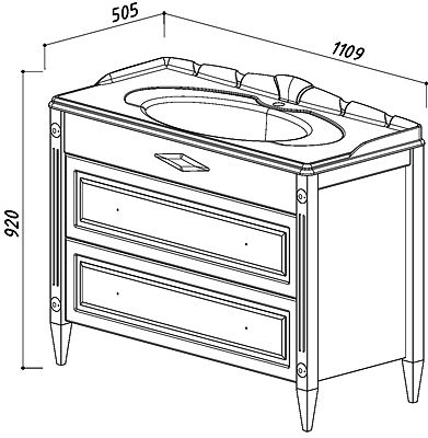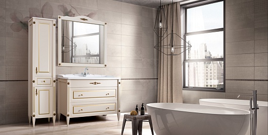 - Тумба под раковину Империя Н 105-02, два раздвижных фасада, слоновая кость с патиной