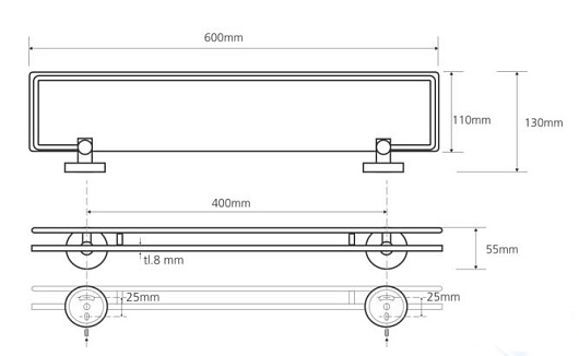 Bemeta Полка стеклянная с бортиком Omega 104102212