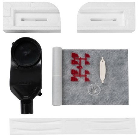 - Монтажная заглушка и регулируемые по высоте ножки (пенопласт).