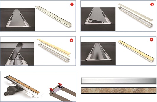 - Решетка, рамка и желоб из нержавеющей стали AISI 304.