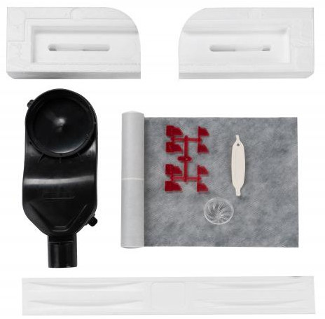 - Монтажная заглушка и регулируемые по высоте ножки (пенопласт).