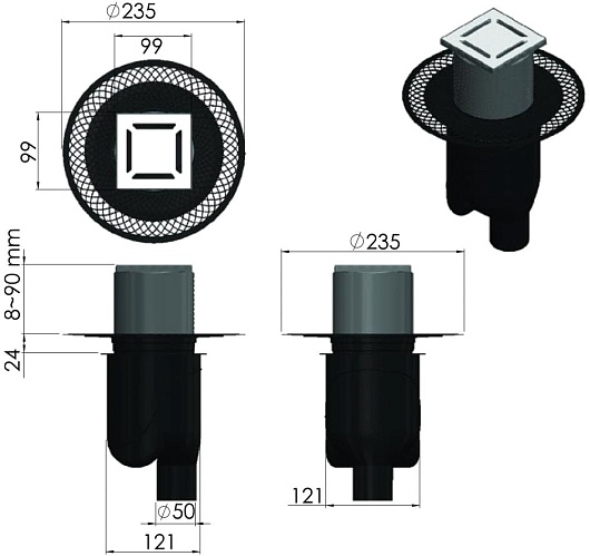 - Размер решетки (ДхШ): 10 x 10 см.