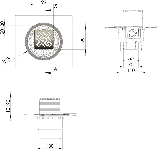 BERGES Wasserhaus Душевой трап Zentrum Antik 100 090464 хром матовый