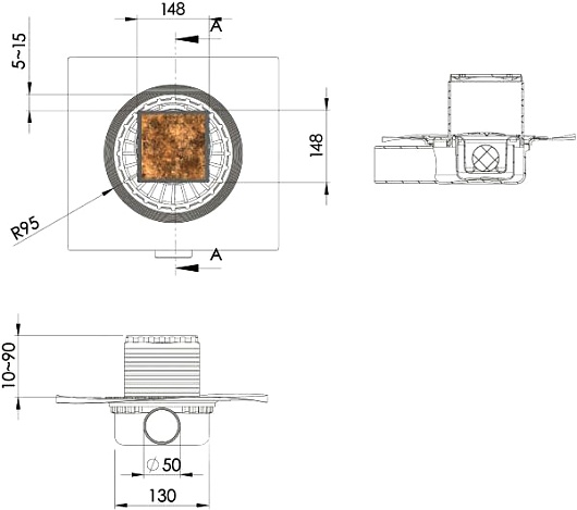 - Размер решетки (ДхШ): 15 x 15 см.