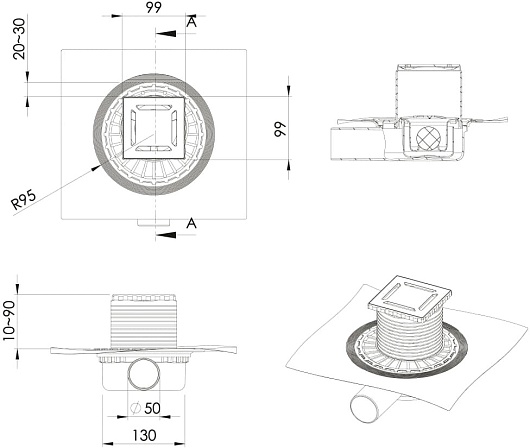 - Размещение: вровень с полом.