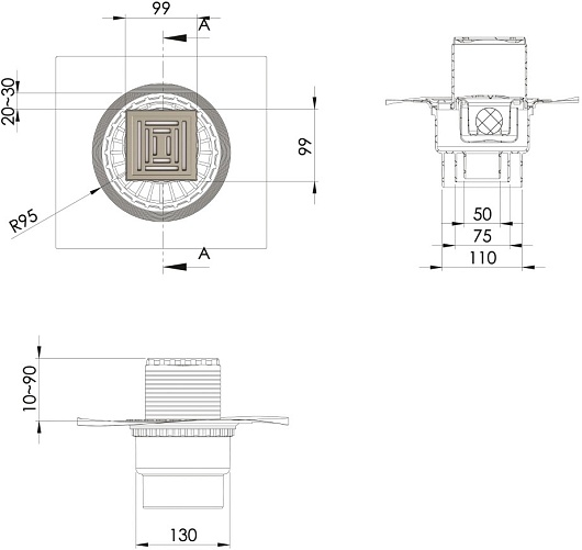 BERGES Wasserhaus Душевой трап Zentrum Uno 100 090471 хром матовый