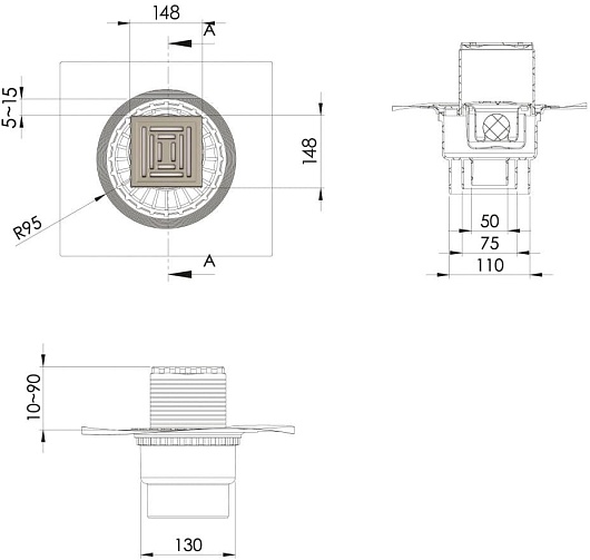- Размер решетки (ДхШ): 15 x 15 см.