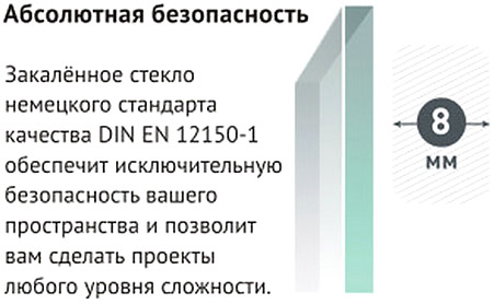 - Закаленное прозрачное стекло 8 мм.