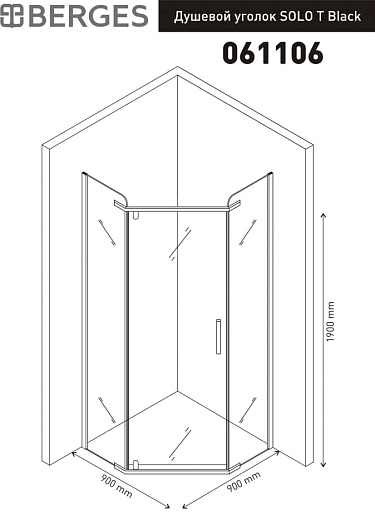 Душевой уголок BERGES Wasserhaus Solo T Black 90x90 061106.