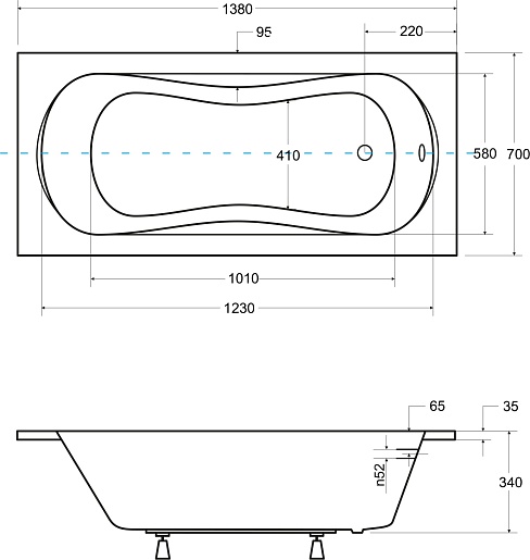 Акриловая ванна Besco Aria Prosafe 140x70 - арт. WAA-140-PS.