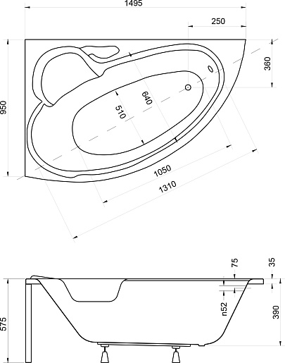 Комплектация: ванна, ножки.
