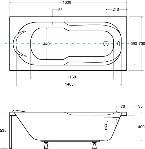 Комплектация: ванна, ножки.