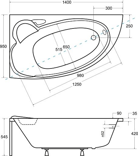 Besco Акриловая ванна Finezja Nova 140x95 L
