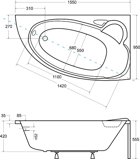 Комплектация: ванна, ножки.