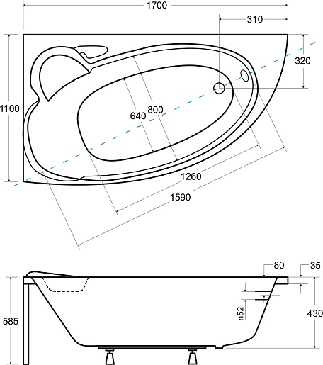 Акриловая ванна Besco Finezja Nova 170x110 L - арт. WAF-170-NL.