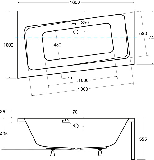 Акриловая ванна Infinity 160x100 L - арт. WAI-160-NL.