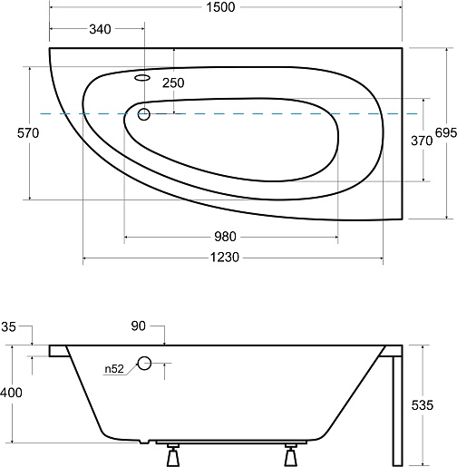 Акриловая ванна Besco Milena 150x70 P - арт. WAM-150-NP.